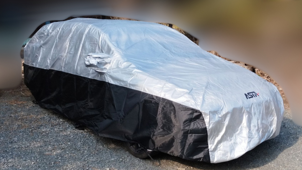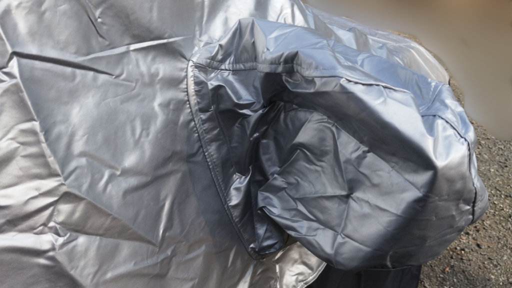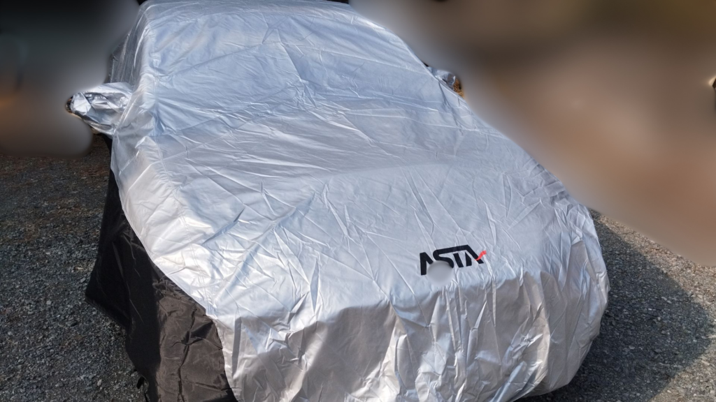 安価なボディカバーは驚くほど軽いものが多いですが、ASTAの5層構造カバーはずっしりとした手応えがあります。これは生地がしっかりと詰まっている証拠であり、広げる前から「あ、これは守ってくれそうだな」という安心感がありました。