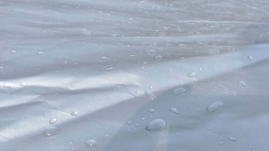 ASTAのカバーは撥水加工が施されており、雨水をコロコロと弾いてくれます。